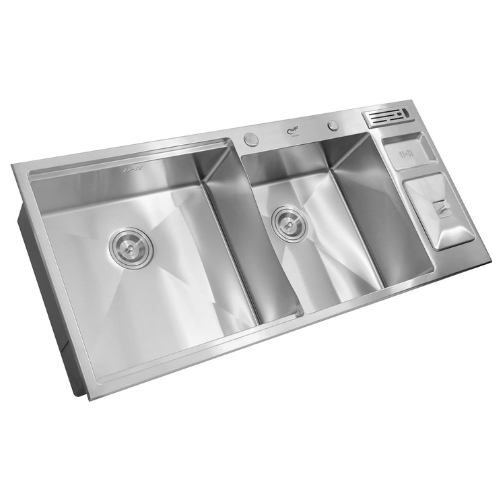 - spacious & deep bowl: overall size – 46" (l) x 20" (w) x 9" (d); left bowl size – 19.75" (l) x 17.25" (w) x 9" (d); right bowl size - 16.5" (l) x 16.25" (w) x 9" (d), weight: 12.5 kg. ideal for washing large utensils with ease.
