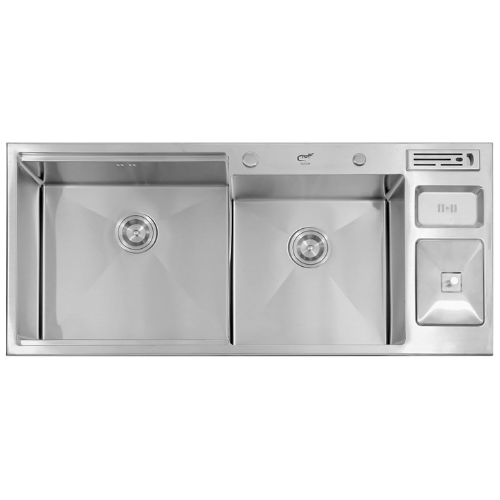 CROCODILE 304 Grade Stainless Steel Satin Finish Double Bowl Dustbin Handmade Kitchen Sink